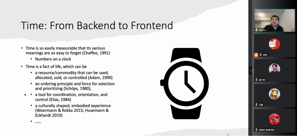 彭泰权教授认为,时间研究应从后端走向前台,时间的意义应得到重新审视。在彭泰权教授看来,时间不仅是一种可供使用、分配、出售及控制的商品或资源,还是人们选择与排序的原则与力量,是用于协调、定位和控制的工具。人们甚至可以将时间抽象成为一种文化塑造(A Culturally Shaped)和具身体验(Embodied Experience)。