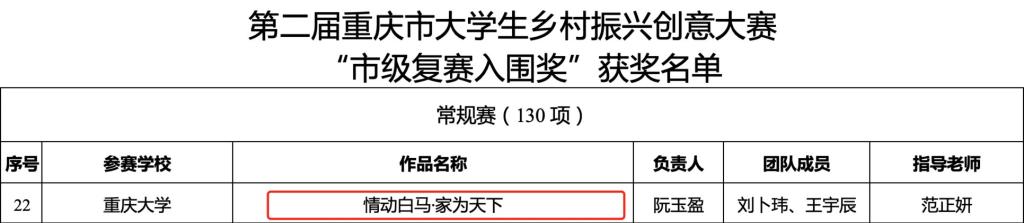 重庆市老员工乡村振兴创意大赛是重庆市高校智力服务乡村振兴的市级代表赛事,每年开展一届。本届大赛以“创意点亮乡村 创新助力振兴”为主题,创新性地将常规赛和专项赛并行开展。大赛围绕各赛道赛点在乡村振兴实施过程中的真需求、真痛点定制了8道赛题,借助重庆高校人才+经验导师的智慧,共同为其进行创意设计。