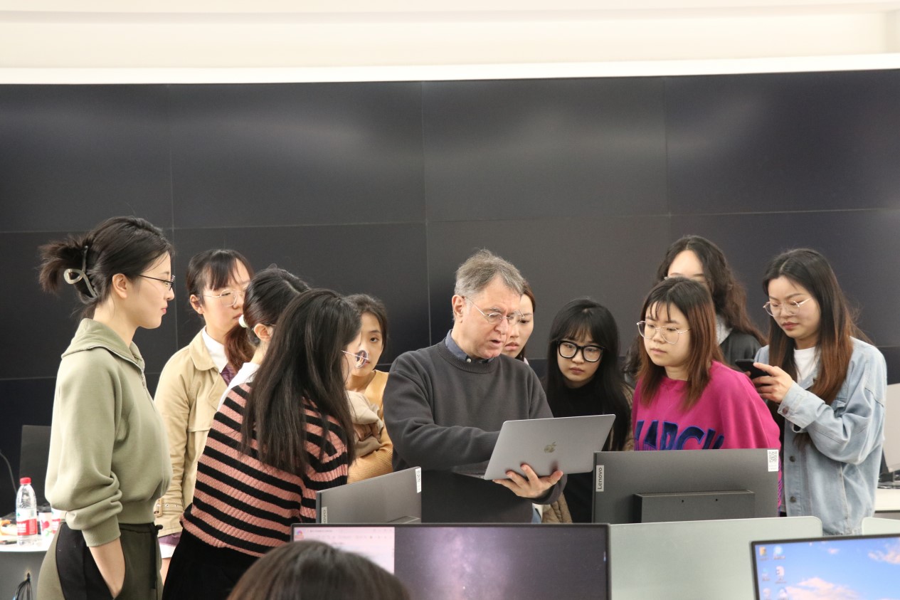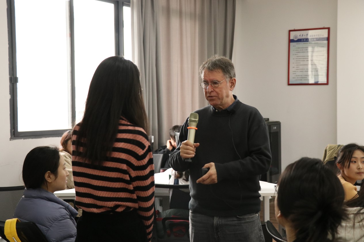讲解结束,同学们围绕课程内容积极踊跃地展开交流,得到雅各布耐心的解答。针对同学“不清楚采访之前的预演是以何种形式进行”的问题,他指出“采访之前的预演并非彩排,只是一场非正式谈话,是为了后续正式采访打好基础。在这之中,我们可以简单提及采访大纲中的问题,而被采访者给出的回答也将作为之后深入采访的重要依据。”同学对老师的写作经历很感兴趣,雅各布也向大家展示了自己曾经的新闻作品。