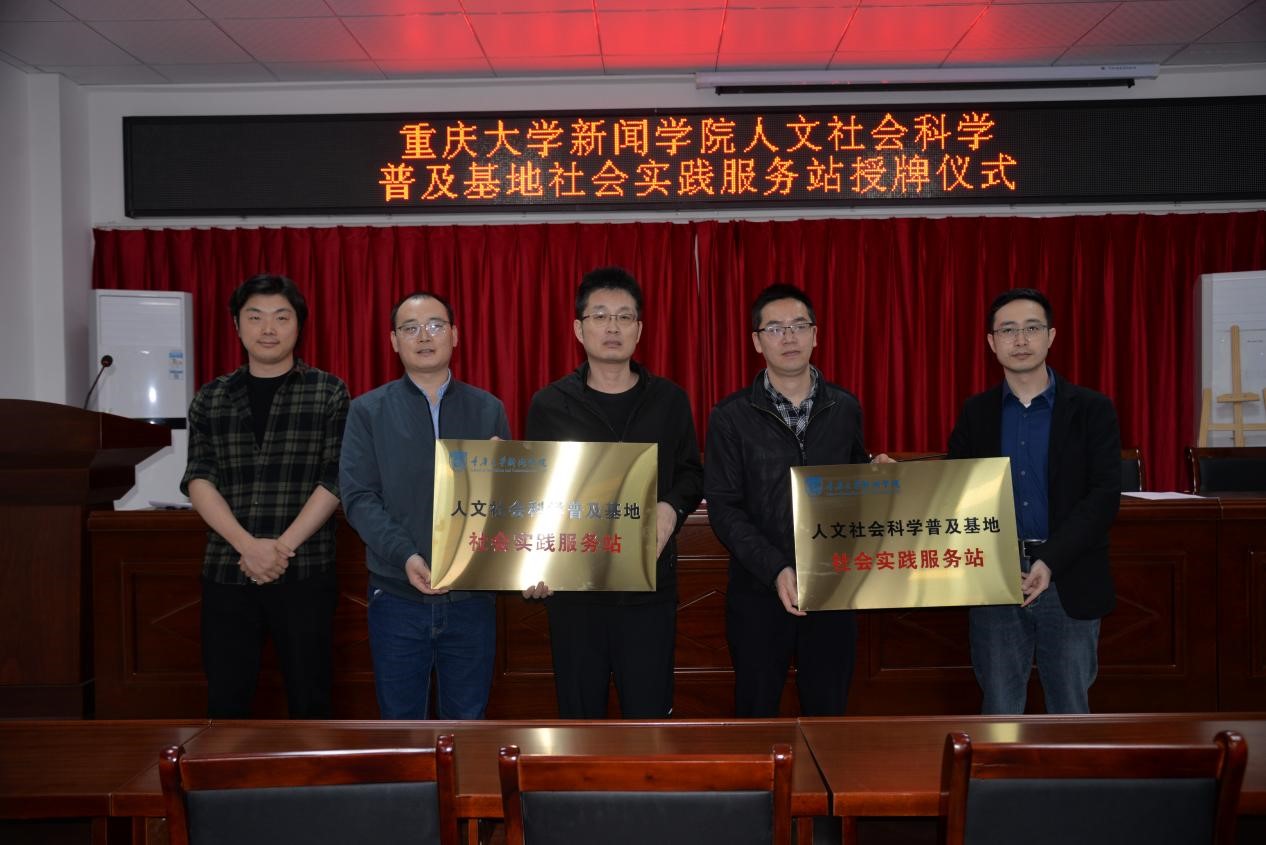 欢迎仪式结束后,郜亚楠、孙良斌老师为高山村、刘骥村的hy3380cc海洋之神人文社会科学普及基地社会实践服务站授牌。