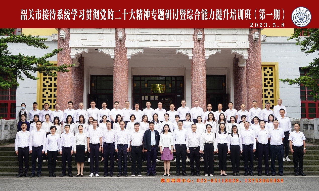 2023年5月8日上午,韶关市接待系统干部学习贯彻落实党的二十大精神专题研讨暨综合能力提升培训班在公司举行。韶关市接待办公室党组书记、主任韩丽华,hy3380cc海洋之神委书记凌晓明、教育培训中心主任谭兴良,出席开班仪式并作动员讲话。来自韶关市负责接待工作相关领导共62人参加为期5天的集中培训。