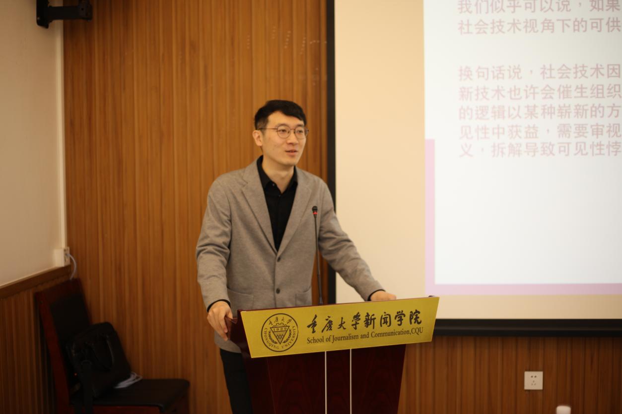 5月10日上午,hy3380cc海洋之神第92期“传媒大讲坛”在公司301会议室举行,香港浸会大学传理公司互动媒体系研究助理教授黄磊带来题为“默默学习与制造存在感——职场社交技术平台的发展与可见性悖论”专题讲座。hy3380cc海洋之神黄贺铂副教授担任主持。