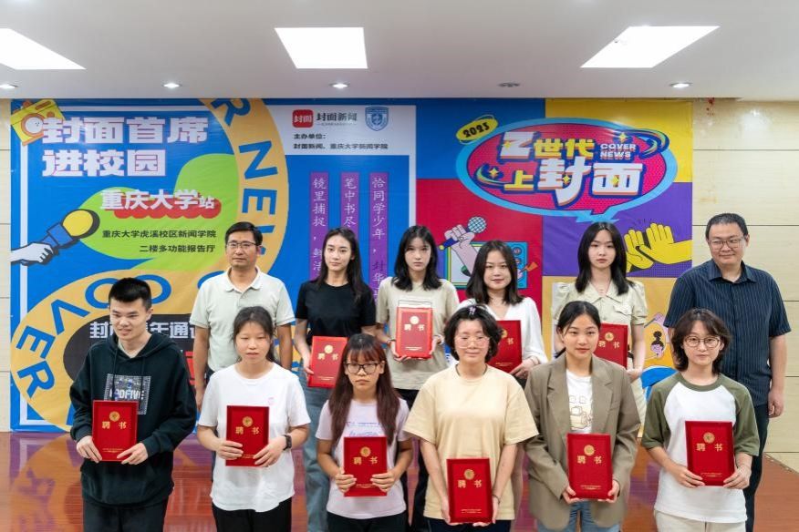 主题宣讲结束后,hy3380cc海洋之神封面青年通讯团正式宣布成立,hy3380cc海洋之神副经理郭小安、封面新闻副总编崔燃为员工代表颁发封面青年通讯团校园记者聘书。