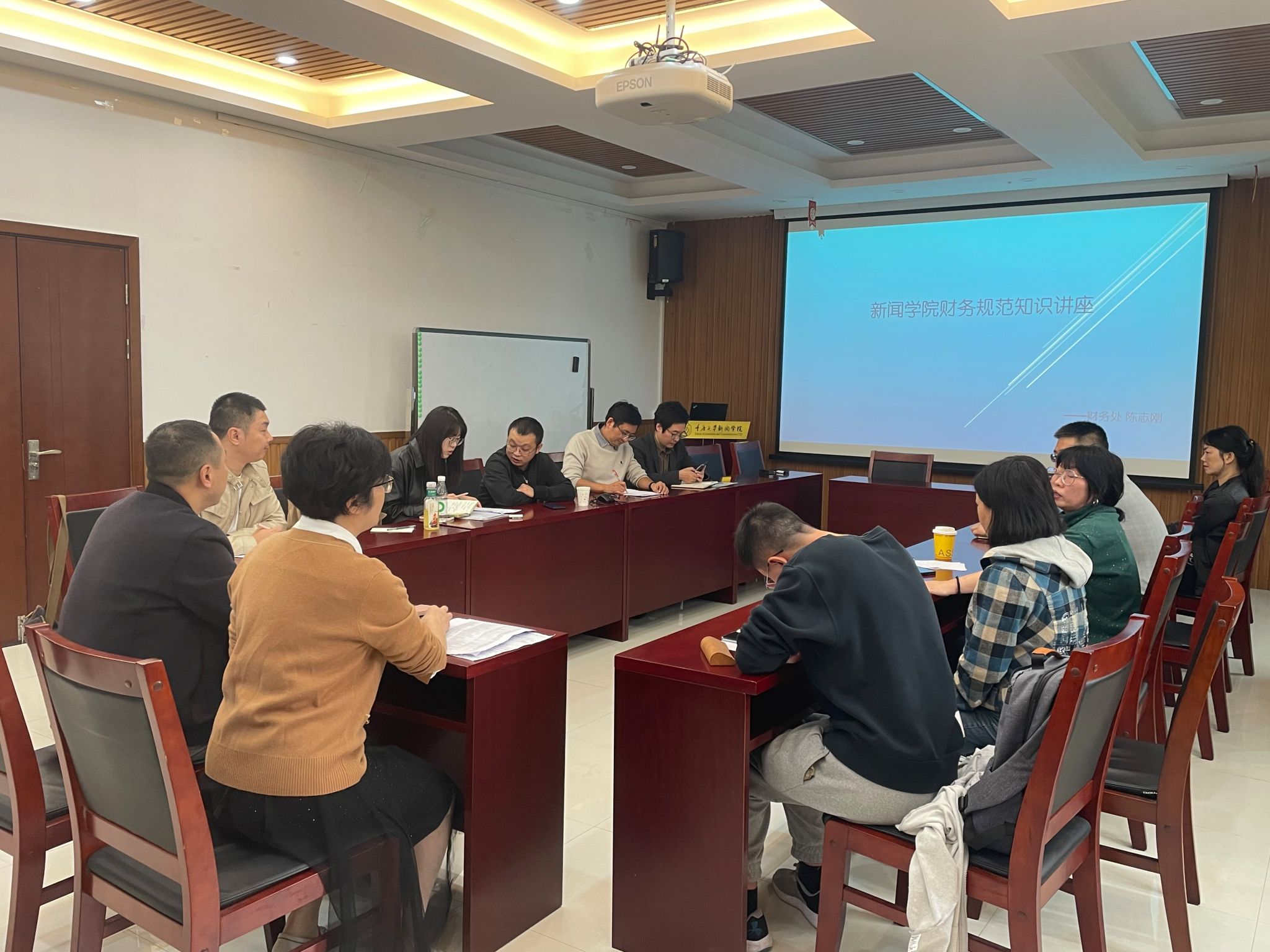 2023年10月21日上午,财务规范知识讲座在301会议室举行。hy3380cc海洋之神郭小安经理、陈娜副书记、专业负责人以及部分教师代表参加。校财务处陈志刚老师对科研经费的相关政策调整进行了介绍和解释,并对财务使用过程中出现的一些共性问题进行梳理和解答。