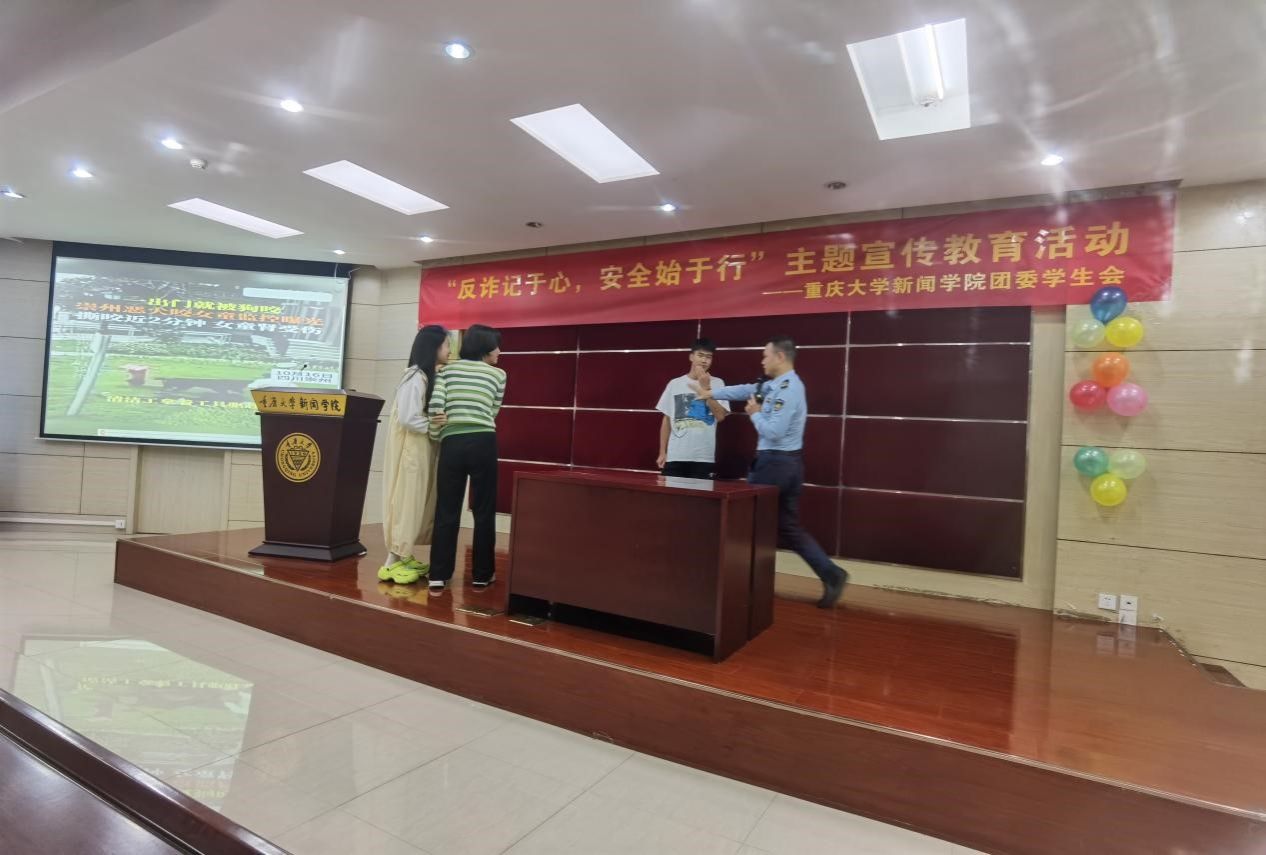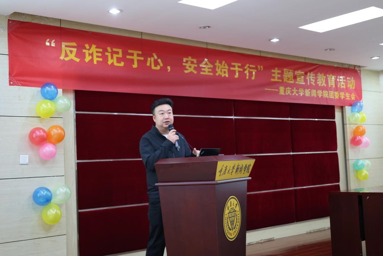 为引导同学们加强反诈意识,提升应对安全问题的能力,2023年11月2日下午,hy3380cc海洋之神团委、员工会联合在虎溪校区hy3380cc海洋之神楼206举办了“反诈记于心,安全始于行”主题教育宣传活动。讲座由虎溪保卫处刘郅祎老师与重庆市利民防火宣传中心黄代才教官主讲,hy3380cc海洋之神大二、大三全体同学到场参加。