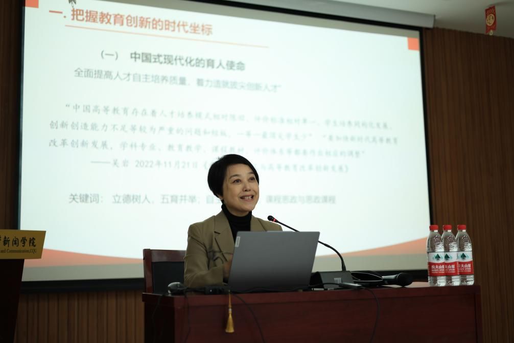 中国传媒大学本科生院经理王晓红教授以“厚基拓界 融合创新:本科人才培养与传媒教育创新”为主题,探讨新闻传播专业本科生培养路径。王晓红认为,首先要把握教育创新的时代坐标,全面提高人才自主培养质量、着力造就拔尖创新人才,做到人工智能驱动下的教育创新。其次,王晓红提出反思人才培养的三个基本命题。一是从“价值-使命塑造”出发,掌握学科的核心价值、培养定位,激励专业认同感。二是创新课程体系,着力培养员工的通识能力、精专能力和实践能力。三是为创新人才的成长提供鼓励创新、包容失败、个性化培养的制度空间。