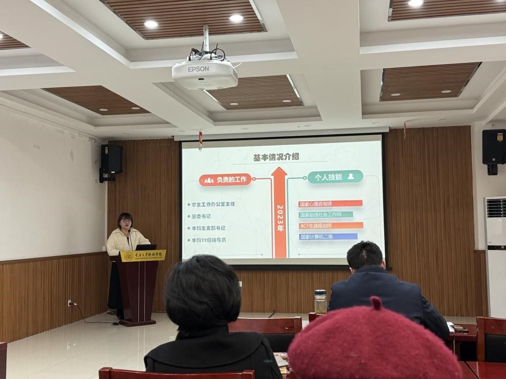 1月8日下午,公司召开2023年度行政教辅人员考核述职会议,党委书记凌晓明、经理郭小安、副书记陈娜、教师代表、员工代表等参会并担任评委,听取行政教辅人员进行工作述职汇报,会议由陈娜主持。