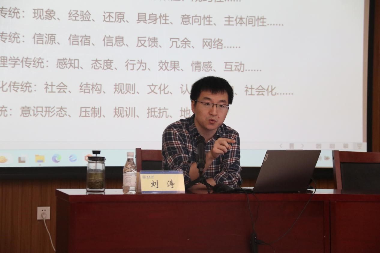 刘涛教授首先从传播学研究的元话语系统与传播研究的七大学术传统引入,深入浅出地讲解了“元”的逻辑和内涵,并指出修辞学传统的引入带来了传播学的新问题、新范畴和新实践,聚焦这一命题的研究便意味着一个新兴学科领域的出现,即传播修辞学。