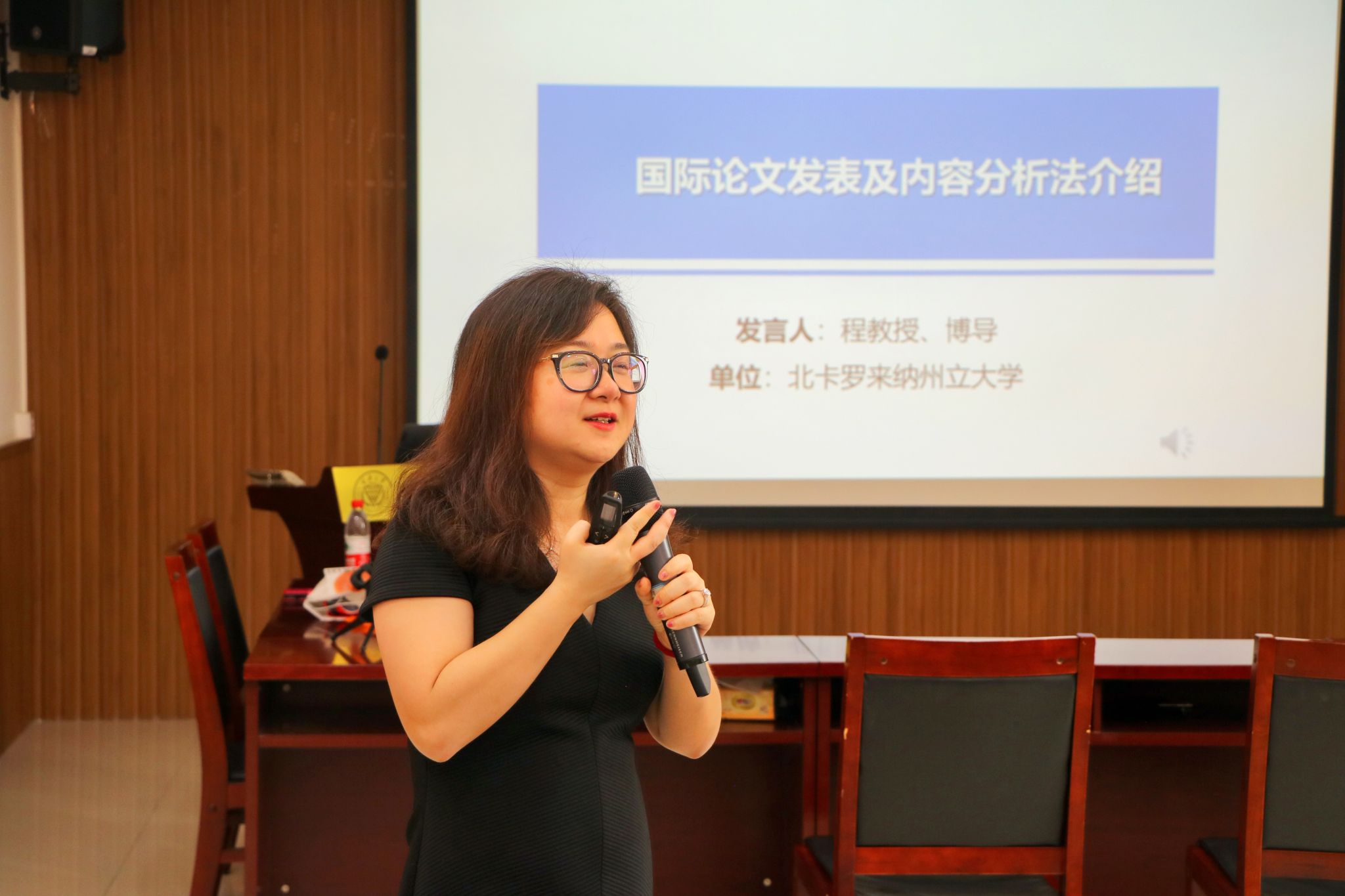 5月16日下午,程杨教授结合自身求学经历和投稿体验讲解国际论文发表的注意事项。程杨教授指出,期刊投稿首先要选定目标期刊,仔细阅读期刊主旨、格式要求等相关信息。程杨教授强调论文投稿要注意论文基本部分是否完整、论文字数、文献综述、文献格式、文章校对和语法修改,切勿一稿多投、文章抄袭或引用不当。随后,程杨教授详细介绍了内容分析法的操作步骤,认为内容分析法使研究者能够以定量的方式看待定性数据,是一种从“非正式”转变为“正式”的研究方法。程杨教授同时指出内容分析法存在一定的缺陷,内容分析法是纯粹的描述性方法,它描述了现存的现象但可能无法揭示现象背后的潜在动机,内容分析法的运用也受到材料可用性的限制。