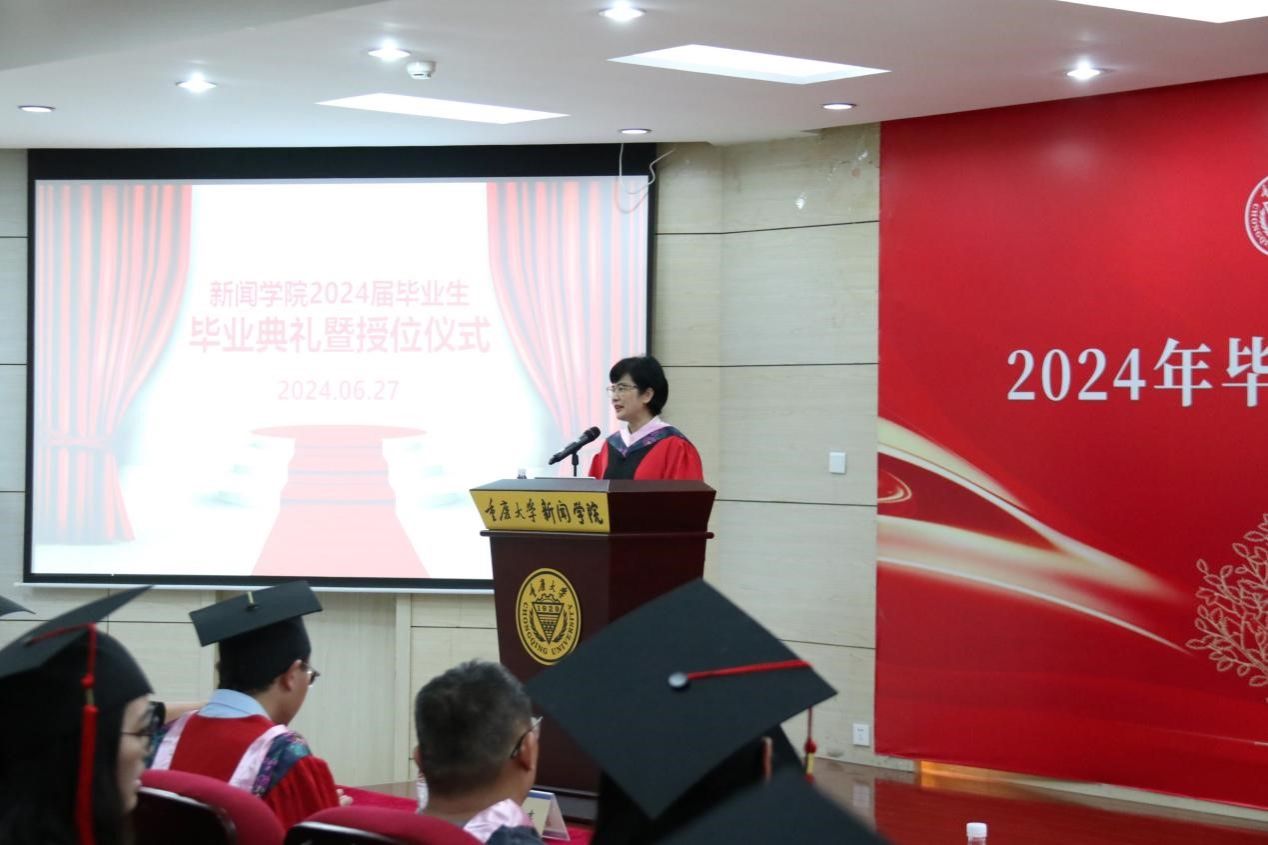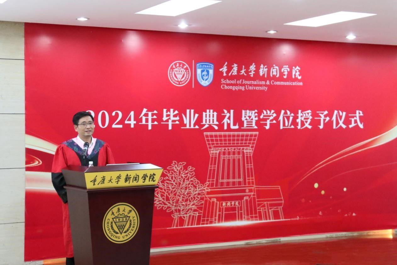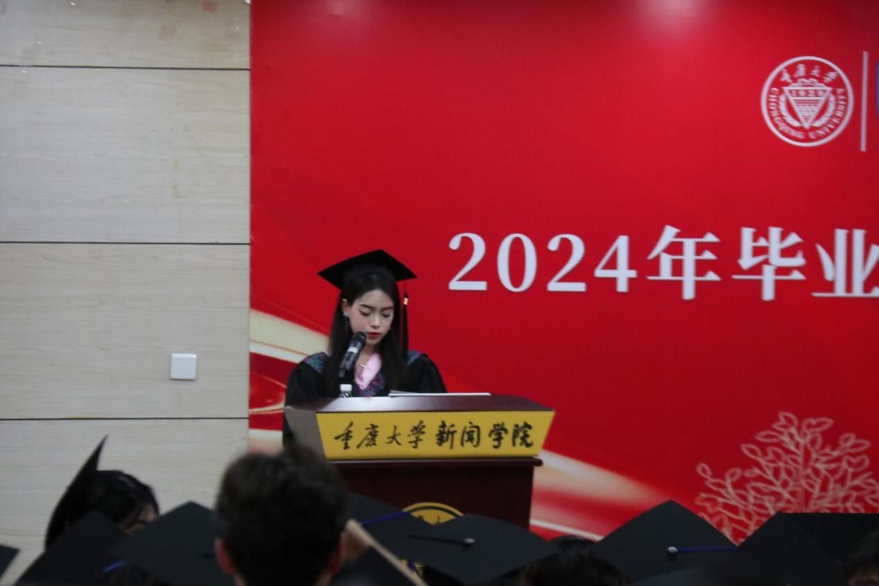 博士毕业生代表赵海明同学在发言中围绕专业、努力和希望三个关键词,回顾了其在校四年学习期间的成长历程,并希望大家相信“相信的力量”。研究生毕业生代表杨雨蓉同学分享了她在三年硕士生涯中的经验和感悟,称新闻不只是记录,更是推动社会进步的力量,我们每一个人,都应成为那股力量的一部分,服务于这个需要更多理解和沟通的世界。本科毕业生代表田凌云同学回顾了四年老员工活的点滴,表达了对新闻理想的坚守和专业学习的感悟,并感激hy3380cc海洋之神和老师们的培养,使其在喧嚣中保持自我,不断成长。同时,她呼吁同学们在未来的道路上心怀梦想,勇敢前行,在各自的岗位上发光发热,展现重大新传学子的风采。