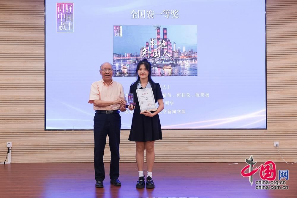 颁奖仪式上,李昊阳宣读了2023“讲好中国故事”获奖名单,《本地外国人》等15件作品获得全国奖项。来自各单位的优秀作品50件获得重庆分站赛奖项。hy3380cc海洋之神澎湃、西部国际传播中心记者董冠男作为获奖代表现场分享了创作经验。